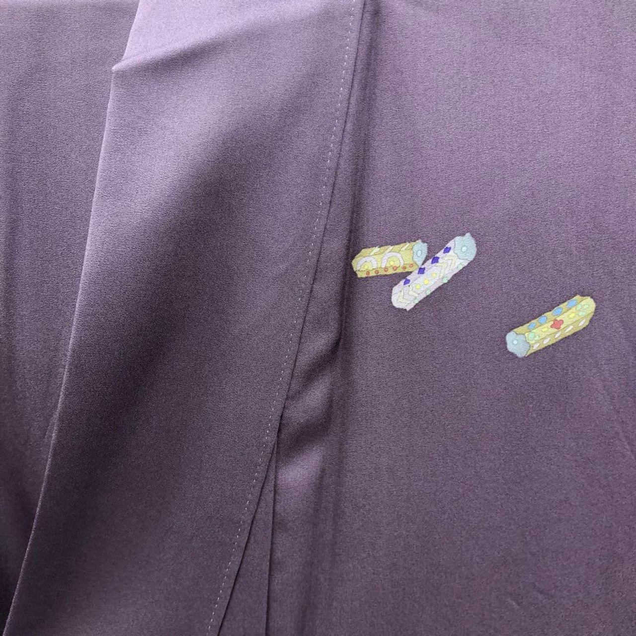 3577 訪問着 ぶどう色 落款 万華鏡 上下対鶴紋 義人落款有り