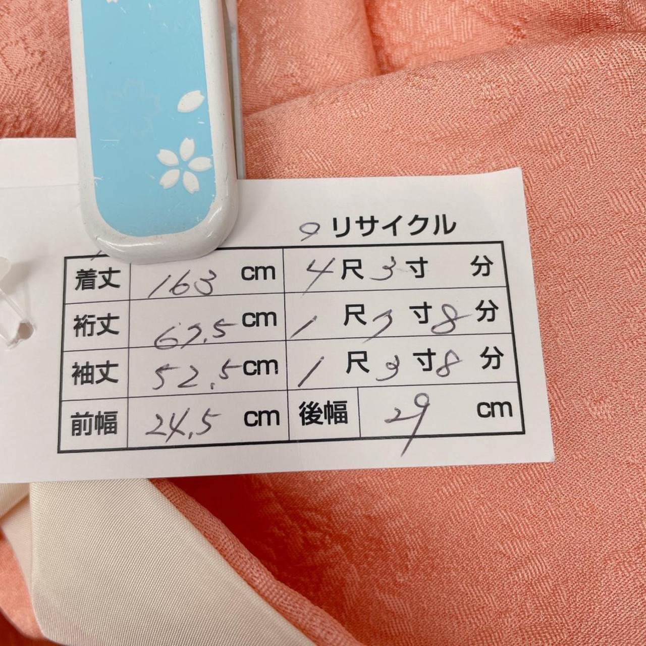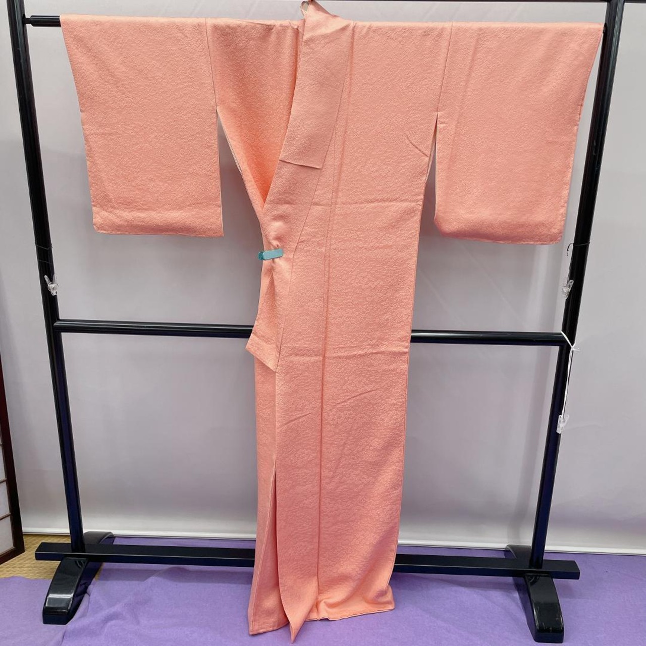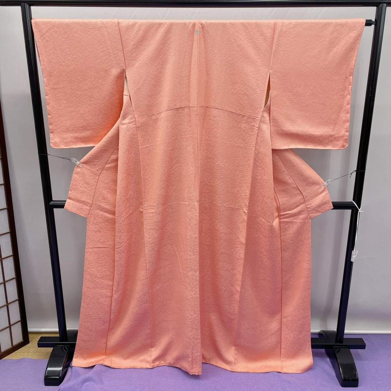 ★1123★ 裄丈67.5 色無地 正絹 袷 着物 オレンジピンク 和装