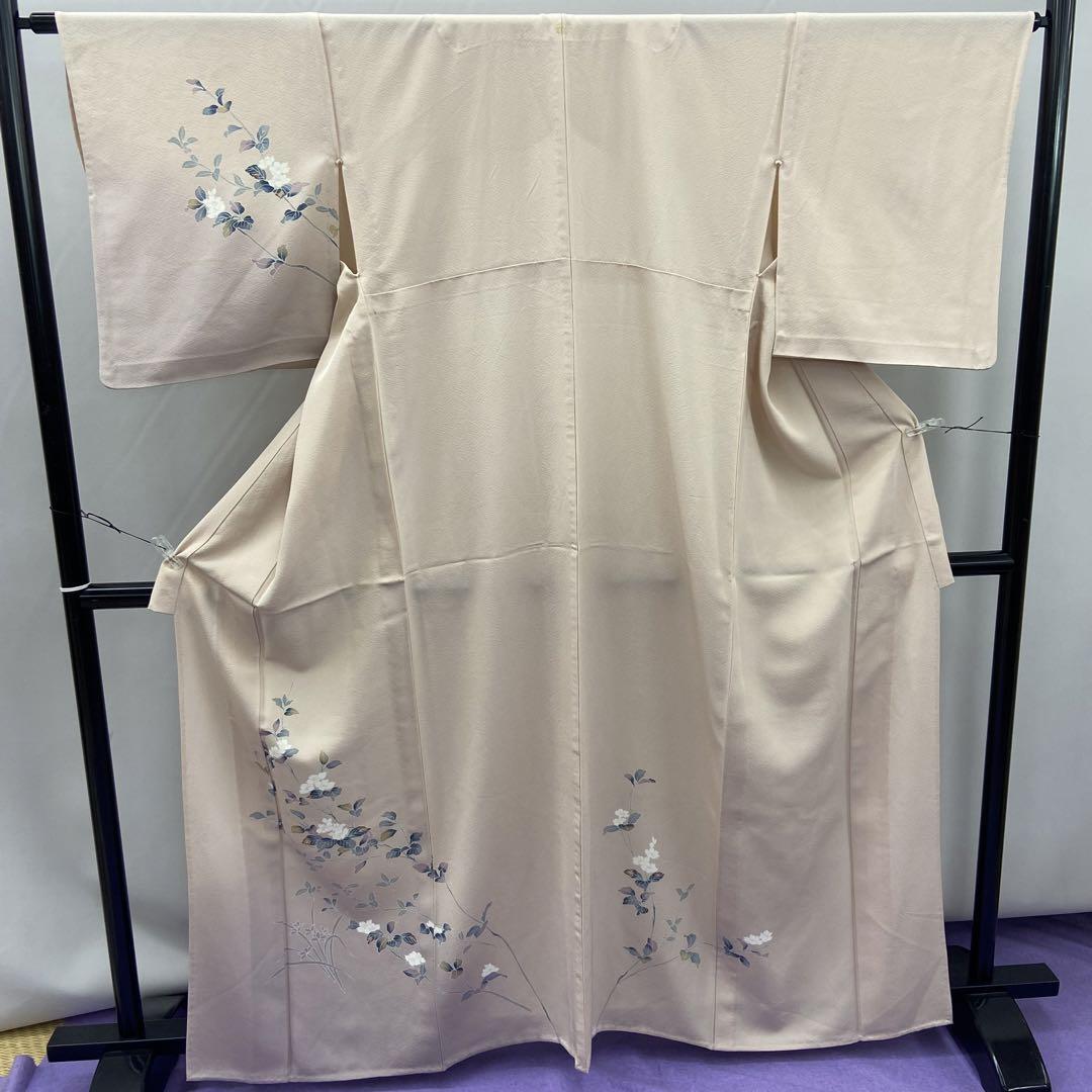 3943 単衣 訪問着 ピンクベージュ 正絹 菊水紋