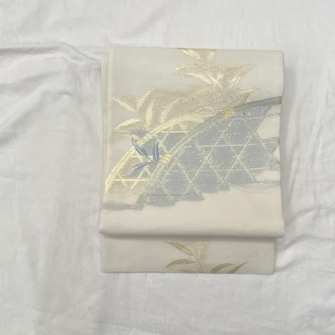 4049 夏袋帯 白 蛇籠 6通 涼しげ 訪問着 お茶会