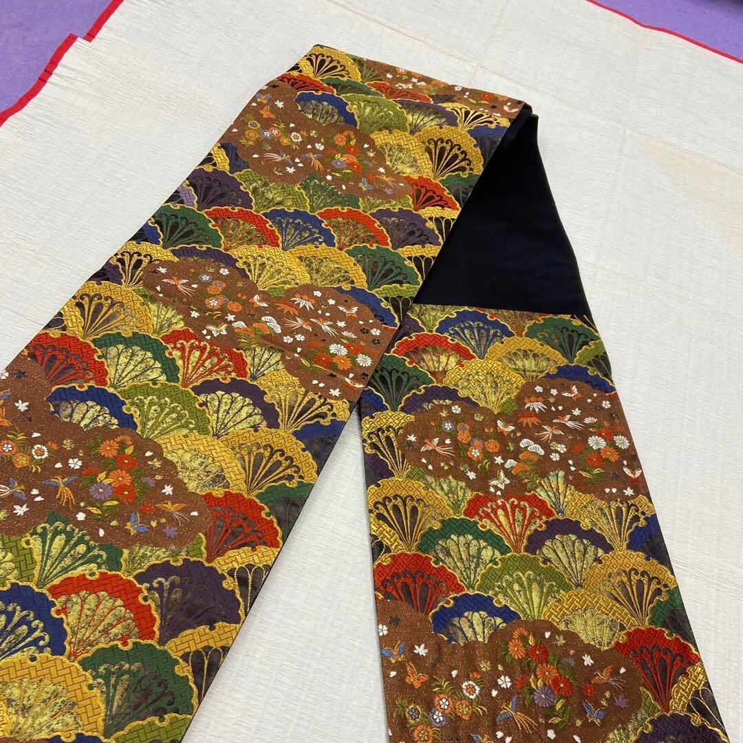 4635 袋帯 正絹 六通 扇 松 菊 蝶 訪問着 留袖