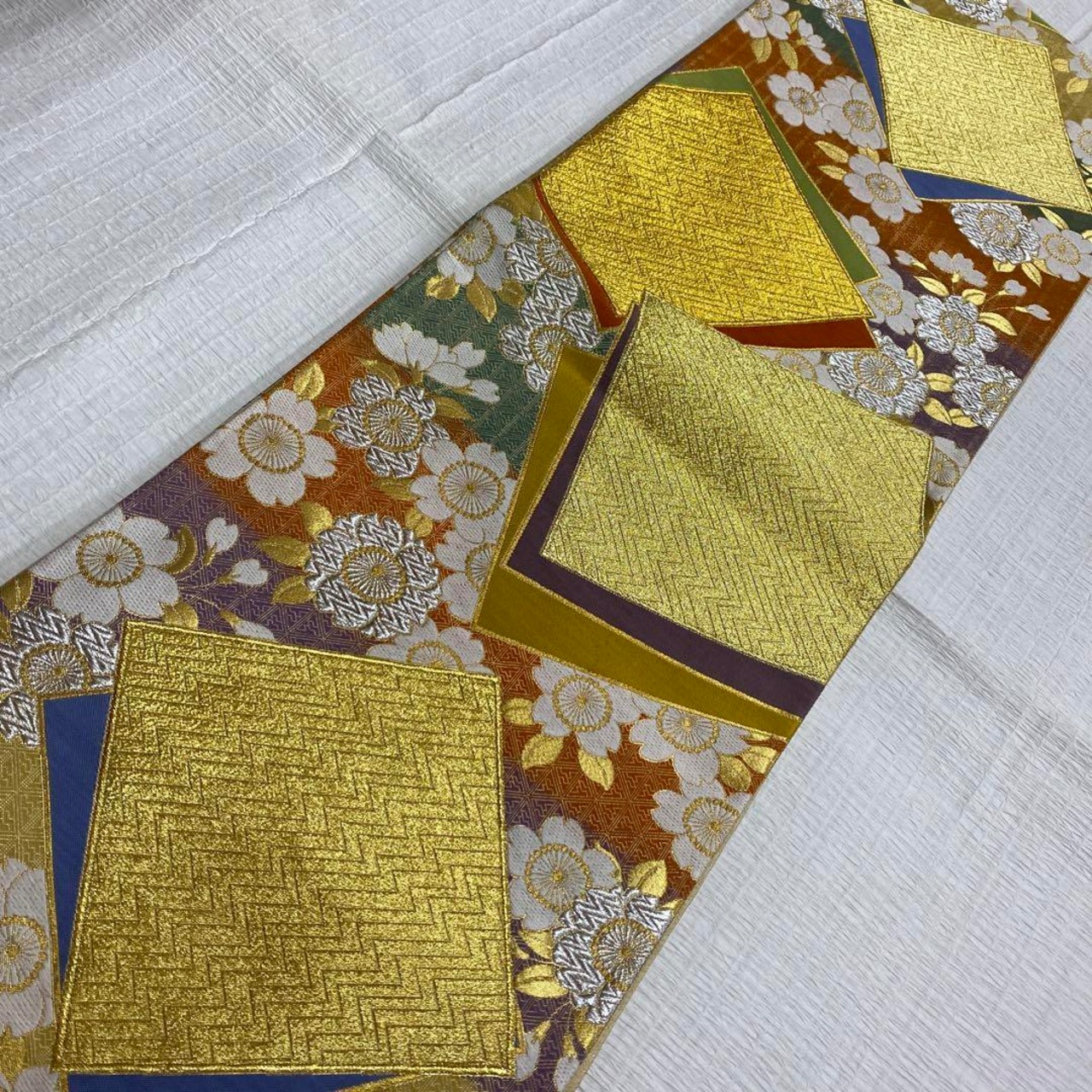 4859 金 色紙 桜 袋帯 正絹 六通 振袖
