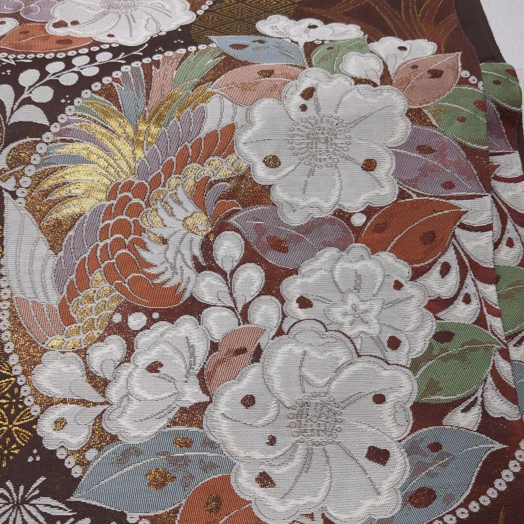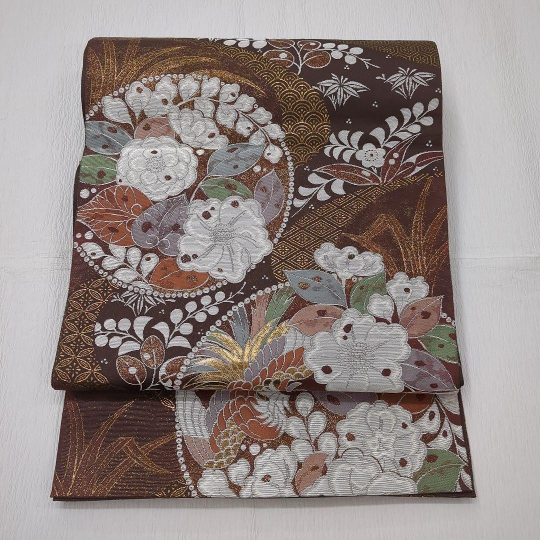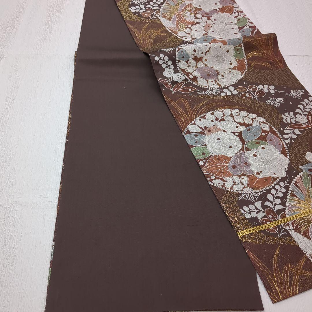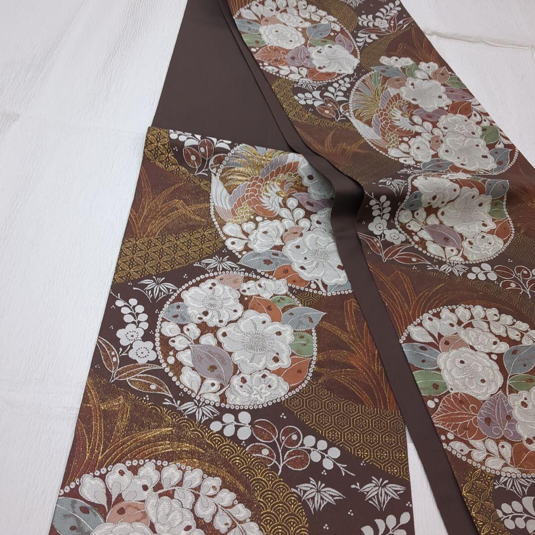 5342 純金 二重箔 袋帯 正絹 六通 訪問着 振袖 色無地 茶系