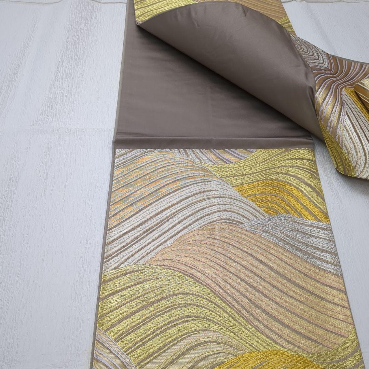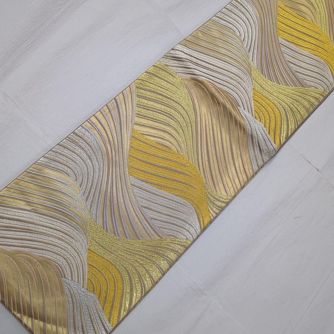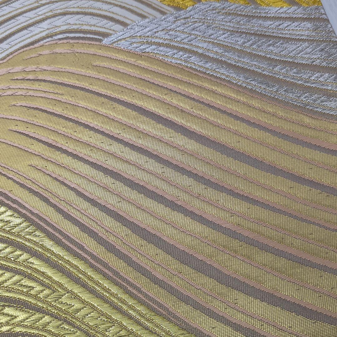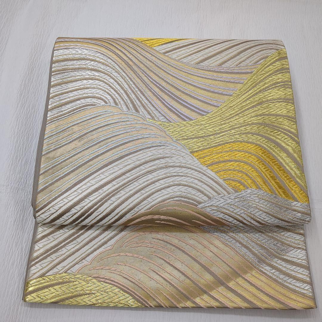 5345 波 ベージュ 金 銀 袋帯 正絹 六通 訪問着 振袖 色無地